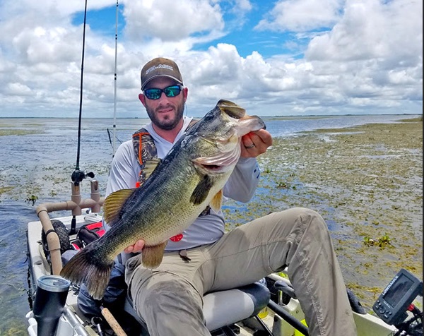 Largemouth bass have large eyes on the top of their head, making them good surface predators.