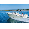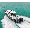 Mag Bay Yachts' new 43 Center Console flagship, developed by Mike and Barrett Howarth, features a patented Cross-Step hull design and premium construction with fiberglass molded stringer grid system and vinylester construction. The boat offers flexible seating configurations and customizable amenities for offshore fishing, family cruising, or yacht tender use, with twin Mercury 600HP V12 outboards standard.