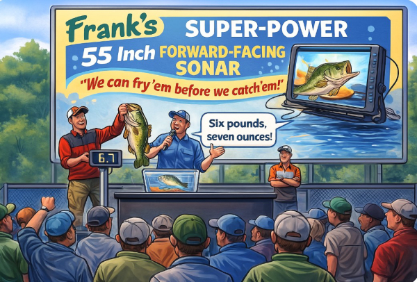 This column has been brought to you by Frank’s Smellicious Catfish Bait, Powered by Frank’s Scent-of-Anchovy Deodorant, In Association with Frank’s Super Power 55 Inch Forward Facing Sonar—“We Can Fry Em Before We Catch Em!”