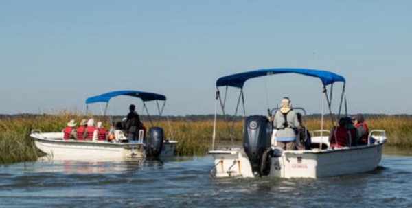 UGA Marine Extension and Georgia Sea Grant’s vessels serve as vital platforms for hands-on learning, coastal research and community engagement. Marine educators use the vessels to take school groups and visitors to Georgia’s largely undeveloped barrier islands, where participants explore the islands’ role in buffering coastal communities from storms and hurricanes. The skiffs also support research and outreach initiatives, from building oyster reefs with recycled shell and sampling estuarine fish populations to monitoring water quality and conducting marine debris cleanups.