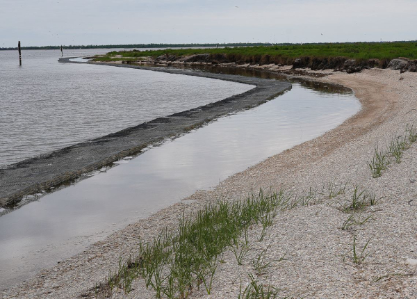 CAMERON PARISH – Louisiana Department of Wildlife and Fisheries (LDWF) Restoration Program staff are encouraged by the initial performance of a shoreline protection feature that was completed at Rabbit Island in December.