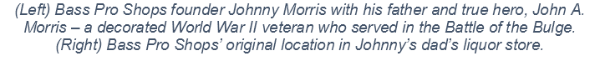 Johnny Morris, legendary angler and noted conservationist, started Bass Pro Shops in 1972 in an 8-square foot space in his father's liquor store in Springfield, Mo. That was the company's sole location for its first 13 years.