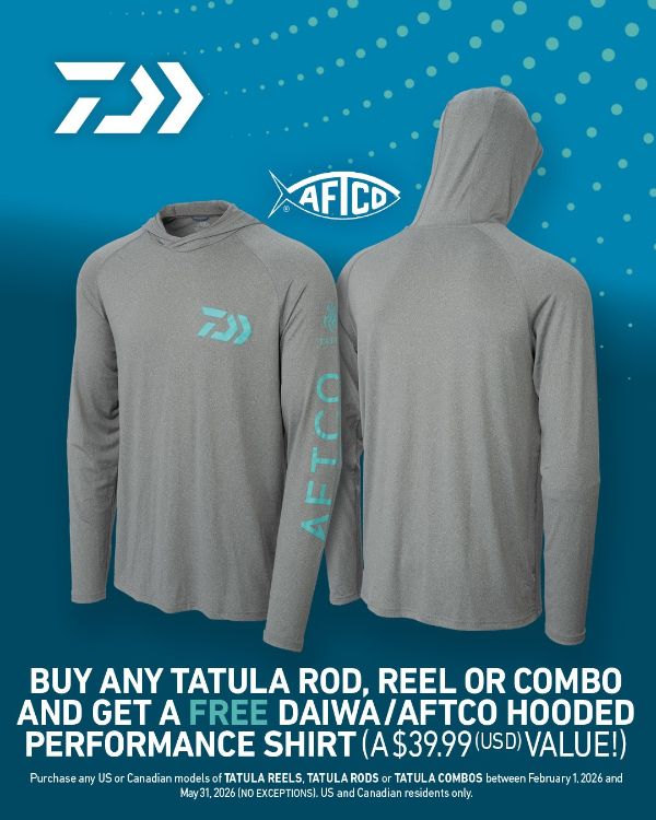 To celebrate this partnership, DAIWA is offering REDCREST-exclusive deals on various rod and reel combos, XBRAID X8, and J-FLUORO. Additionally, select DAIWA purchases over $60 will include a free DAIWA/AFTCO hooded shirt, a collaboration that pairs the industry's leading tackle technology with premium performance apparel.