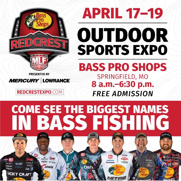 REDCREST 2026 Presented by Mercury and Lowrance will take place next week, April 17–19, on Table Rock Lake in Springfield, Missouri, and will feature the top anglers in professional bass fishing competing for a top prize of $300,000. The Outdoor Sports Expo at Bass Pro Shops will run concurrently with the event and is free and open to the public.