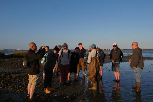 2024 Sea Grant Aquaculture Leadership Academy participants tour a Sandbar Oyster Company oyster and salt marsh restoration project in North Carolina. (Photo by LaDon Swann)