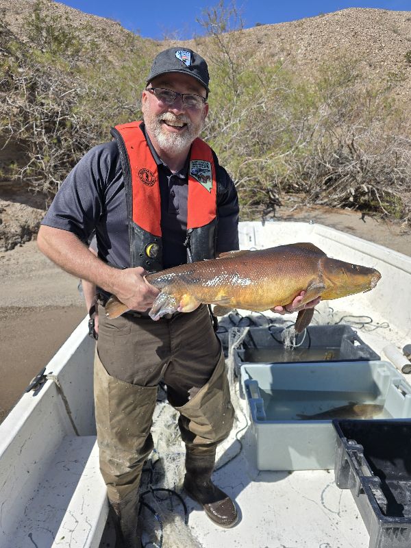 Razorback suckers are huge suckerfish with a unique "humpback" and built to survive and thrive in the Colorado River system. This is a species that many agencies including NDOW have been working to help recover for decades. Significant population declines began decades ago, largely due to the construction of dams on the Colorado River system, changing typical river habitat into a lake environment and the addition of predatory fish species that were new to the river, i.e. the razorbacks evolved to be perfectly suited for a raging river environment with fewer natural predators.
