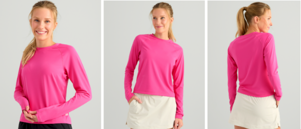 Inspired by mornings on the water and days spent in the sun, the Women's Sunup Collection blends performance with effortless style. Crafted from a breathable, stretchy nylon-spandex fabric, each piece offers UPF 50 protection and wicking comfort to keep you cool through every adventure. Designed with raglan sleeves, thumbholes, and a modern cropped fit, Sunup transitions seamlessly from fishing to wherever the day takes you. (MSRP $70.00)