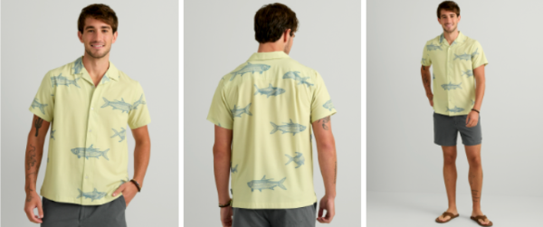 The Huk Camp Shirt blends laid-back coastal style with technical performance. Made from a lightweight 71% polyester, 21% cotton, 8% spandex blend, it features UPF 30+ sun protection, 4-way stretch, quick-drying fabric, and a sewn-down center front facing. A built-in microfiber wipe keeps your shades clean, making it perfect for casual days by the coast or relaxed nights out. (MSRP $70.00)