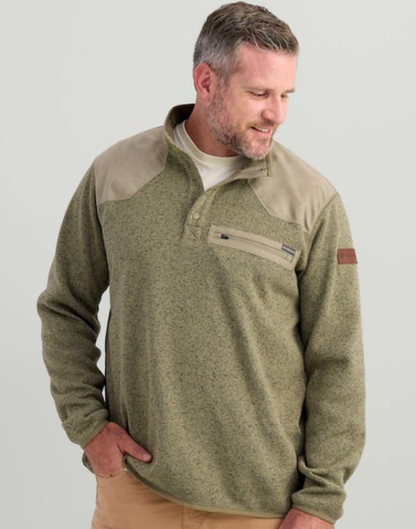 The Statesman Snap Pullover retails for $90 and is available in an attractive Overland Heather drab green or Volcanic Ash Heather dark gray.