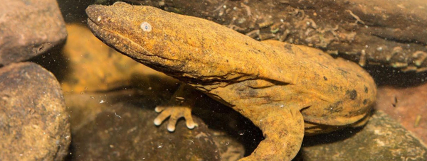 Hellbenders used to have a much larger range, occurring in most of southeast Indiana’s tributaries to the Ohio River and in the Wabash River. Sadly, its population has dropped drastically due to modification of stream habitats including the accumulation of sediment, agricultural and industrial pollution, warming waters and the channelization of streams and rivers. Because of their decline, these endangered ancient amphibians, with their large, unique flat bodies, have become the focus of an ambitious conservation effort led by Purdue University.