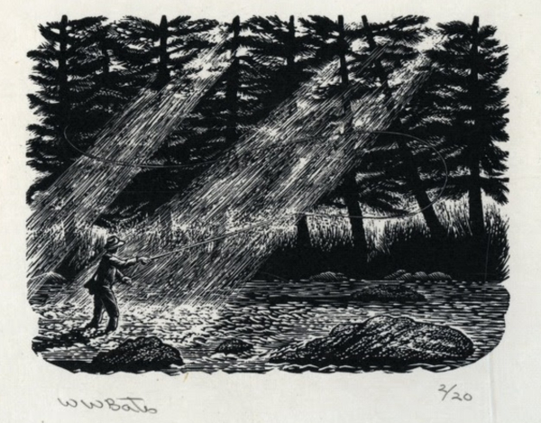 The exhibit features 34 wood engravings by a trio of artists: Barry Moser, Wesley W. Bates, and Chris Wormell, all featured in the books A River Runs Through It by Norman Maclean, Home Waters by John Maclean, and the 100th anniversary edition of Ernest Hemingway’s Big Two-Hearted River. The illustrations capture the central truth of each of these famous fish stories – that the solitary fisherman is never alone. They recall the hands that tied the intricate flies, conversations with family members and friends no longer here, and places where lasting memories are made. Maclean family memorabilia and a special exhibit on historic fishing will be displayed alongside the artwork.
