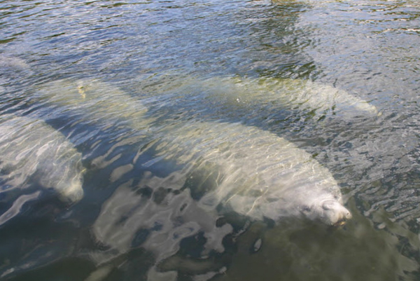 When viewing groups of manatees at warm-water sites, it is important to give them space. Disturbing manatees at these sites can cause them to swim out of protected areas and into potentially life-threatening cold water. Manatees are a protected species, and it is illegal to harass, feed, disturb or harm them.