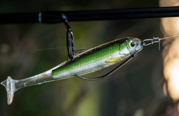 Rigging one of these 4- to 5-inch baits on a heavy jig head offers an excellent presentation for deep scenarios like river ledges and rock piles, but soft-body swimbaits also have several shallow water applications. Here, the best option is a Mustad AlphaPoint Infiltrator Swim Hook.