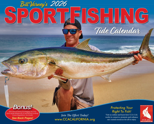 The eagerly anticipated 2026 Coastal Conservation Association of California (CCA CAL) SportFishing Tide Calendar is here! Produced by famous shore-based angling expert and educator Bill Varney, the calendar includes beautiful artwork, as well as useful fishing information. Proceeds from the sale of the calendar support the work of CCA CAL in advocating for habitat improvement and fisheries enhancement, as well as the rights of ocean anglers. The 2026 calendar is available at tackle shops, landings and online at surffishtackle.com.