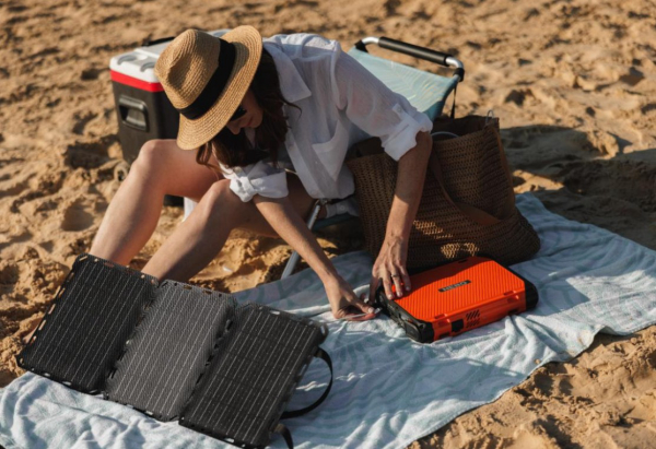 Device charging couldn’t be more effortless. The RAMBLER 300’s dual USB-A output ports are rated for up to 18W each, the USB-C IN/OUT port is rated for up to 100W output, and the USB-C OUT port is rated for up to 20W output. It has an integrated flashlight with SOS mode to illuminate any situation and a handy carry strap for easy transport.